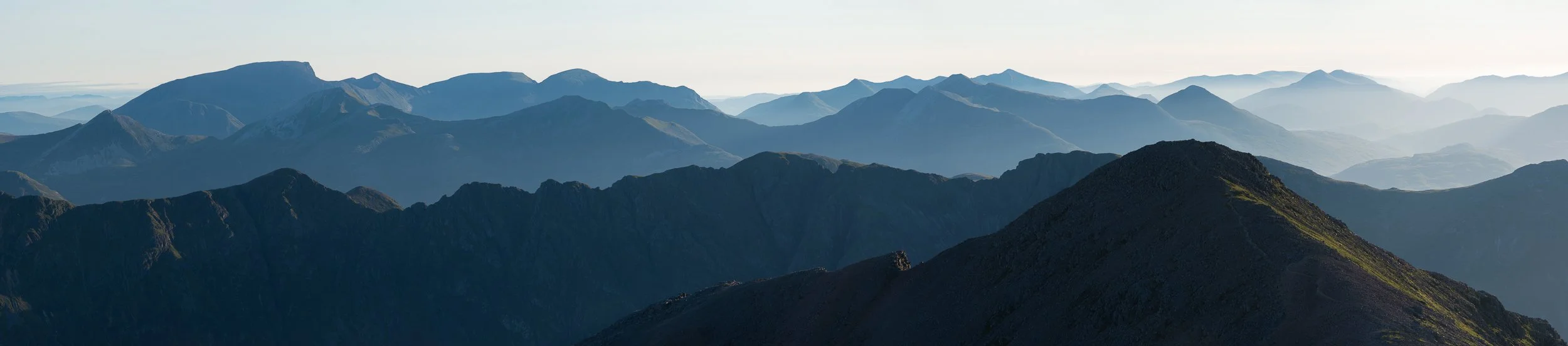 Lochaber is a region in the West Highlands of Scotland that is home to many of Scotland’s finest Munros, including the UK’s highest peak, Ben Nevis, its mighty neighbours (the 4,000ft+ peaks of Carn Mor Dearg, Aonach Mor and Aonach Beag and the Great Corries) and the slightly lower but no less aesthetically-pleasing (and backpacker’s delight) Mamores. Further south, the interest for walkers and climbers continues as the steep-sided hillsides and ridges continue above the glacier-gouged glens of Glen Coe and Glen Etive, home to more classic Munros such as Meall Dearg and Sgòrr nam Fiannaidh (challengingly located at either end of Aonach Eagach, perhaps the UK mainland’s trickiest mountain ridge), the huge bulk of the Bidean nam Bian massif, plus Ben Starav, a not quite as big but still a no less-fine Munro that is guarded by what I imagine to be one of the most well-loved Munros of all, Buachaille Etive Mor, aka the ‘Big Herdsman of the Etive’. What follows is a selection of images showcasing the mountain views across the landscape of Lochaber in Scotland, many taken from the summit of just one Munro, Bidean nam Bian, and its satellite peaks, Stob Coire nan Lochan and Stob Coire nam Beith.